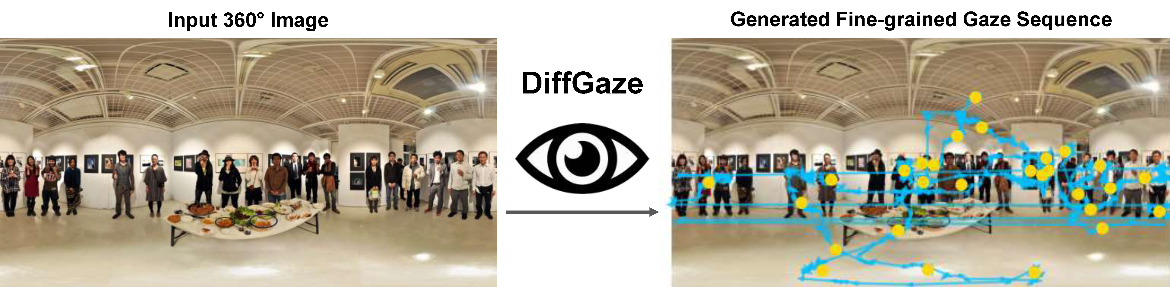 Modelling human gaze behaviour on 360° images is important for various human-computer interaction applications. However, existing methods are limited to predicting discrete fixation sequences or aggregated saliency maps, thereby neglecting fine-grained gaze behaviour such as saccadic eye movements that can be captured by commercial eye-trackers. We introduce a more challenging task—fine-grained gaze sequence generation. This task aims to generate eye-tracker-like gaze data for given stimuli. We propose DiffGaze, a diffusion-based method for generating realistic and diverse fine-grained human gaze sequences conditioned on 360° images. We evaluate DiffGaze on two 360° image benchmarks for fine-grained gaze sequence generation as well as two downstream tasks, scanpath prediction and saliency prediction. Our evaluations show that DiffGaze outperforms the fine-grained gaze generation baselines in all tasks on both benchmarks. We also report a 21-participant survey study showing that our method generates gaze sequences that are indistinguishable from real human sequences. Taken together, our evaluations not only demonstrate the effectiveness of DiffGaze but also point towards a new generation of methods that faithfully model the rich spatial and temporal nature of natural human gaze behaviour.Links